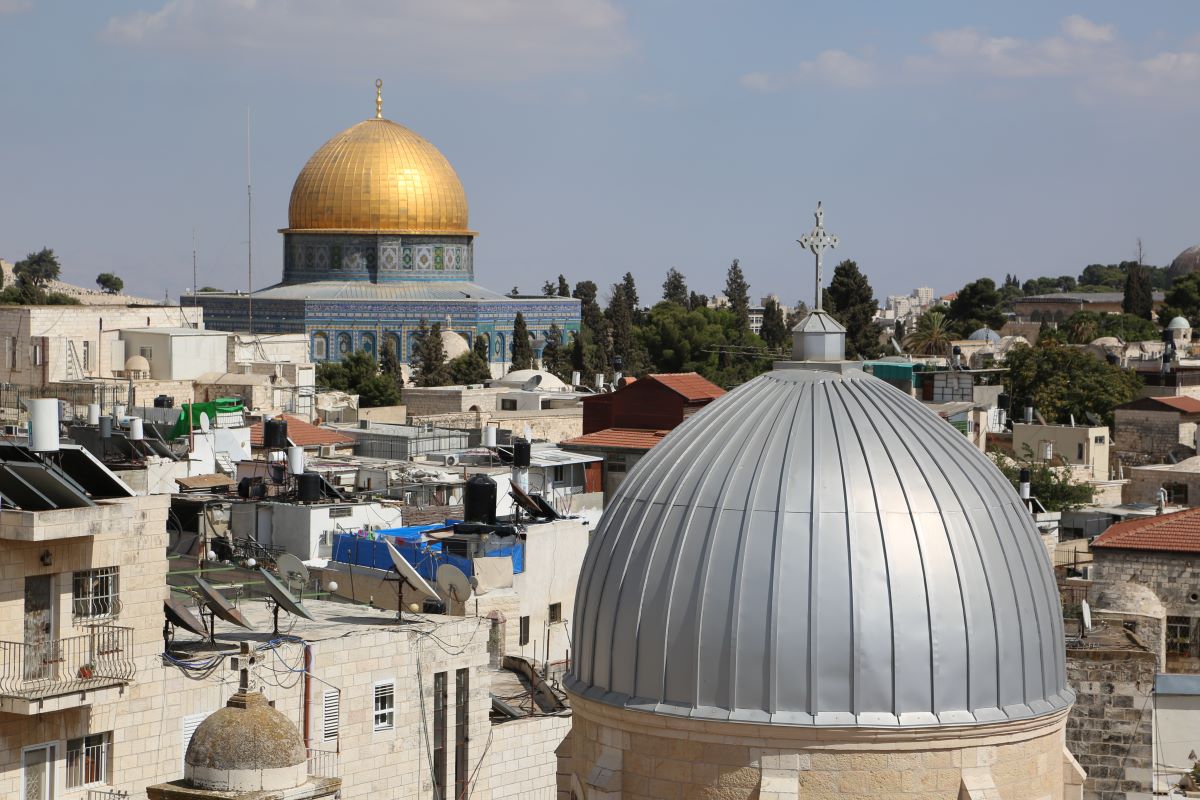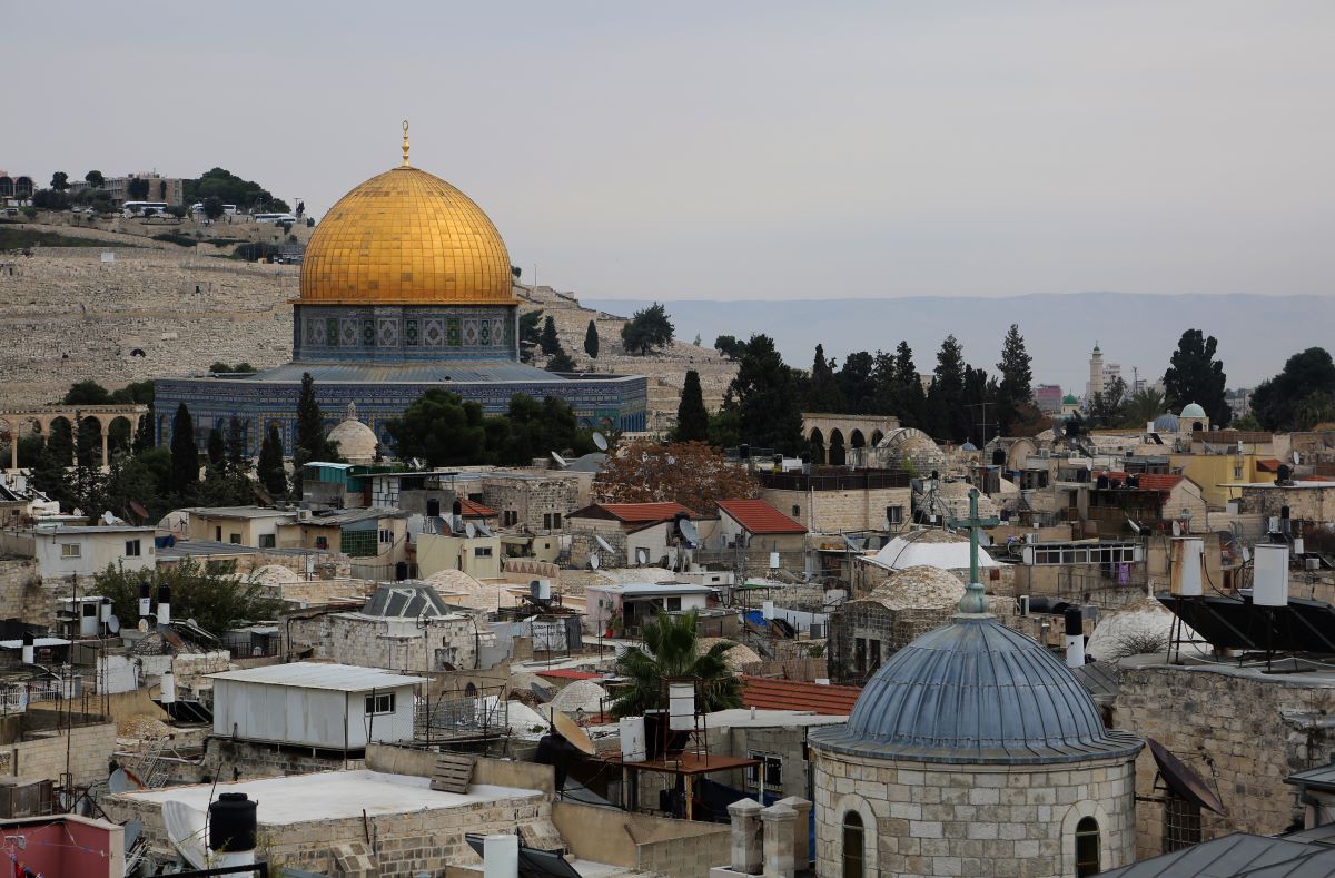 The city of Jerusalem is situated in a mountainous area that is part of the Jerusalem mountain range, rising about 750 meters above sea level. Jerusalem holds a religious and historical significance unlike any other city, as it is the cradle of the three Abrahamic religions: Islam, Christianity, and Judaism. Its civilizational history spans over five thousand years, as archaeological excavations have revealed. The city has been known by various names throughout its history, including Ursalim, Jebus, Aelia Capitolina, Al-Quds, and Beit Al-Maqdis. Its history and the landmarks within it bear witness to successive civilizations, including the Bronze and Iron Ages, the Greek and Roman periods, and later the Islamic periods starting from the Umayyad, Abbasid, Fatimid, Ayyubid, Crusader, Mamluk, and Ottoman periods. The city encompasses more than 220 landmarks, including the Church of the Nativity, the Dome of the Rock, Al-Aqsa Mosque, and the Western Wall (Wailing Wall). With its rich history and diverse monuments, the city serves as a unique model of human heritage.